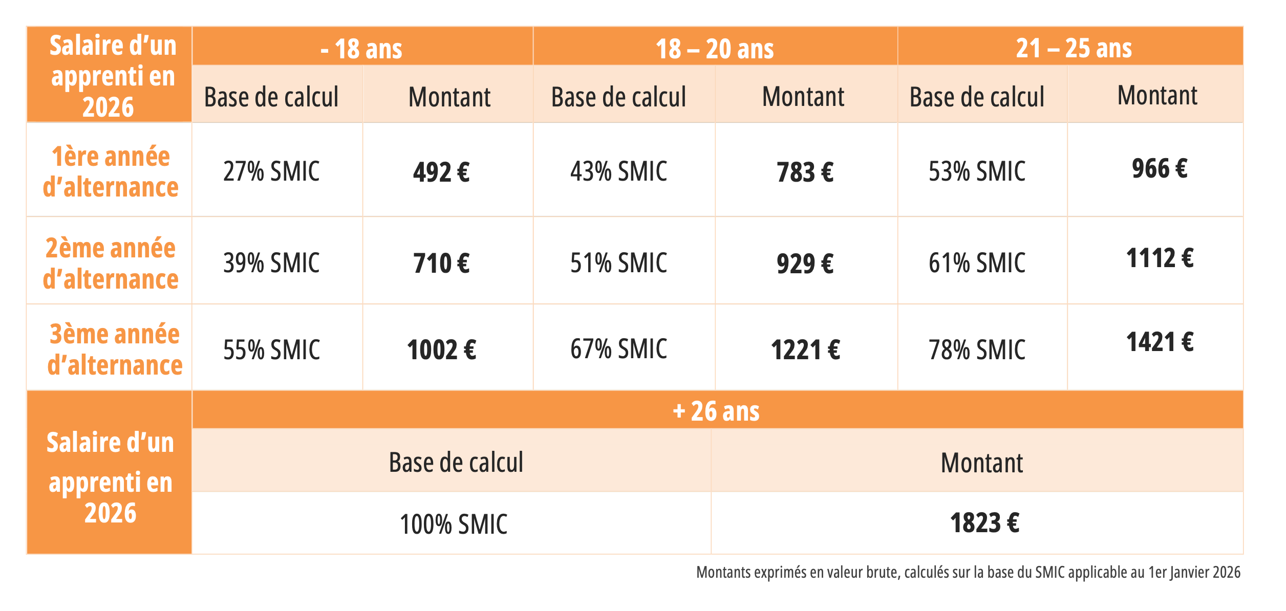 L’apprenti perçoit une rémunération correspondant à un pourcentage du SMIC qui varie en fonction de son âge et de sa progression dans le cycle de formation. Depuis le 1er mars 2025, le salaire des apprentis va diminuer.